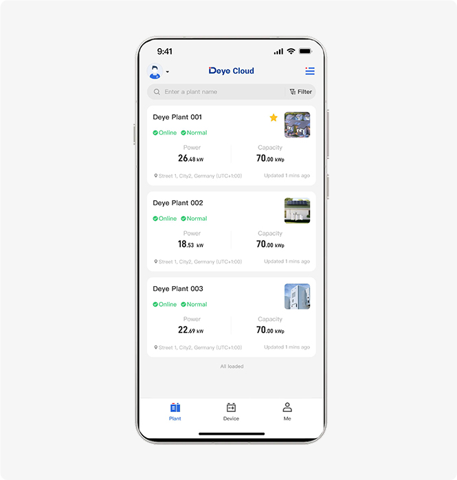 En tirant parti de la plate-forme Cloud Deye, nous fournissons une gestion centralisée entre les centrales, améliorant considérablement la valeur globale de nos clients.