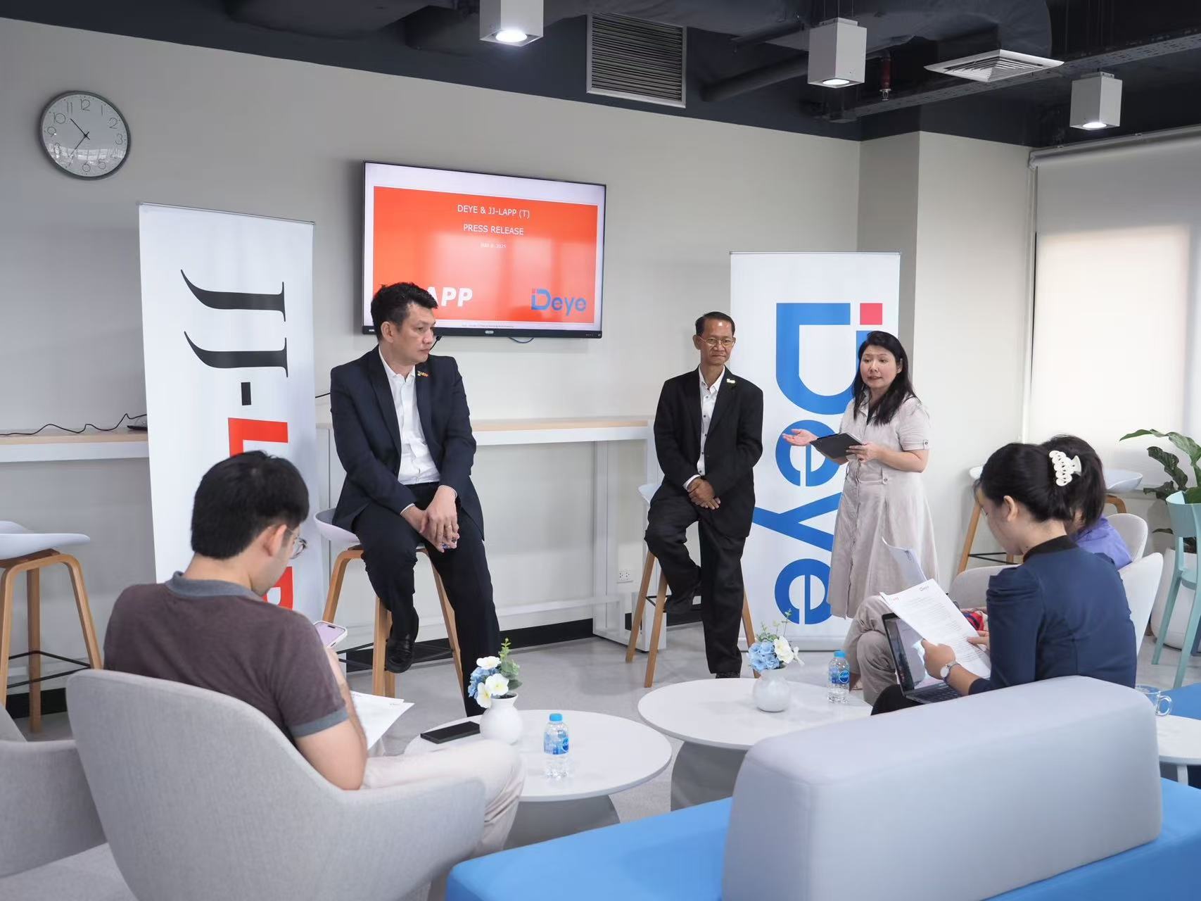 JJ-Lapp Thailand gérera les ventes, la distribution et le soutien des services de la gamme complète de produits et solutions d'énergie solaire de Deye, y compris les onduleurs solaires, les climatiseurs solaires, les solutions de stockage d'énergie (ESS) et les onduleurs hybrides; Renforcer le vaste portefeuille de JJ-LAPP et sa position en tant que fournisseur de solutions à guichet unique capable de soutenir un large éventail de projets solaires, notamment résidentiel, commercial, industrie et services publics. Portant la technologie d'énergie solaire, l'investissement et l'expertise sur le marché thaïlandais, le partenariat contribuera également à répondre à la demande croissante de solutions d'énergie renouvelable fiables et efficaces et à accélérer l'adoption d'énergie solaire dans le pays.