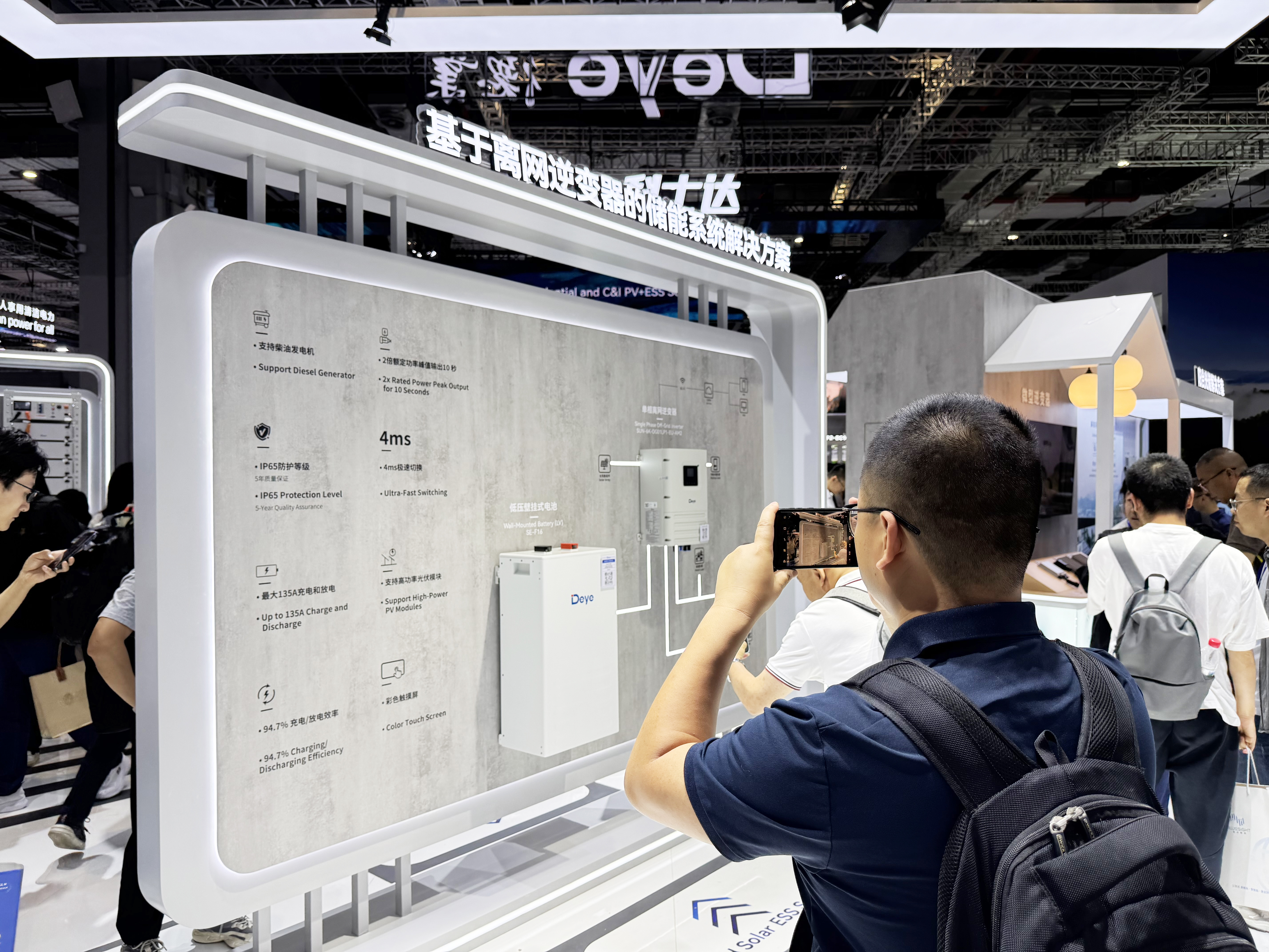 Dans le segment du stockage d'énergie résidentiel, Deye a présenté plusieurs produits phares, y compris l'onduleur hybride à basse tension de 20 kW, et a mis en place un mur de système de gestion de l'énergie sans fil immersif (EMS) pour les démonstrations en direct. Les visiteurs ont connu une communication à faible latence sans couture sans couture pour la gestion et l'automatisation des charges à domicile.